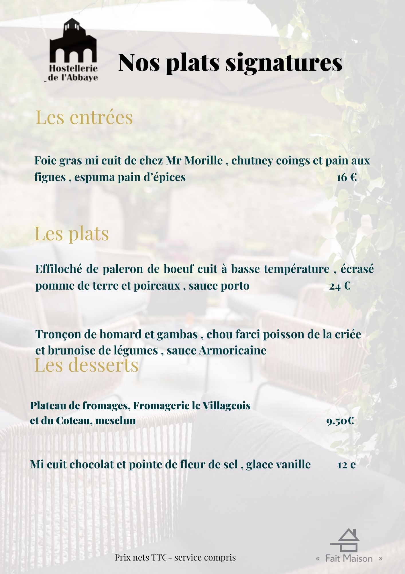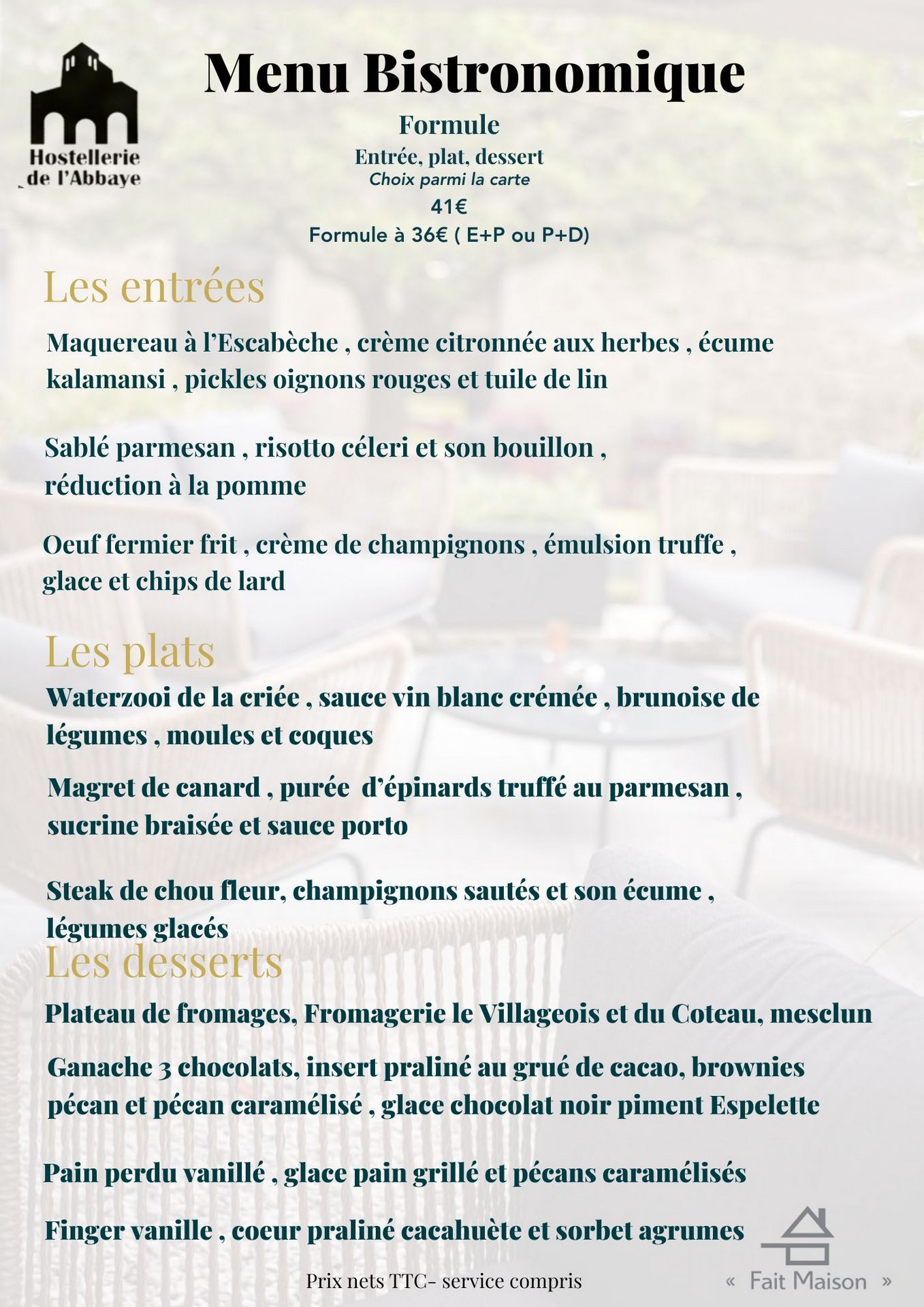 Our bistro-style menu evolves with the arrival of products,